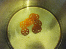 No, there's no such holiday as Seis de Mayo, but yesterday Cinco de Mayo did remind me of a really fun Mexican snack called duros. Duros are made of wheat flour and look like hard, wagon wheel shaped pasta before they're cooked. They're usually deep fried, but can be microwaved (but I tried it and decided they shouldn't be). The reason I say these are fun isn't just because they're delicious and fun to crunch. Most of the real fun comes from watching them quickly puff up about seven times their size (scroll down to see a video of the puffing).